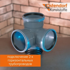 Этот фитинг восстанавливает раструб в месте срезанного конца трубы и позволяет подключить два горизонтальных направления под углом 87° относительно друг друга и вертикальной оси. Это особенно удобно при разводке стоков в условиях ограниченного пространства.